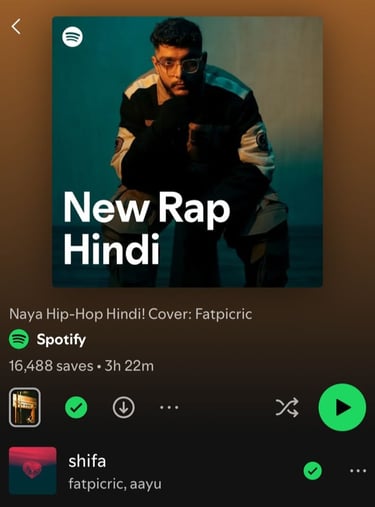 FATPICRIC'S SHIFA ALSO GOT FEATURED ON SPOTIFY'S " NEW RAP HINDI " PLAYLIST INCLUDING FATPICRIC AS THE POSTER BOY